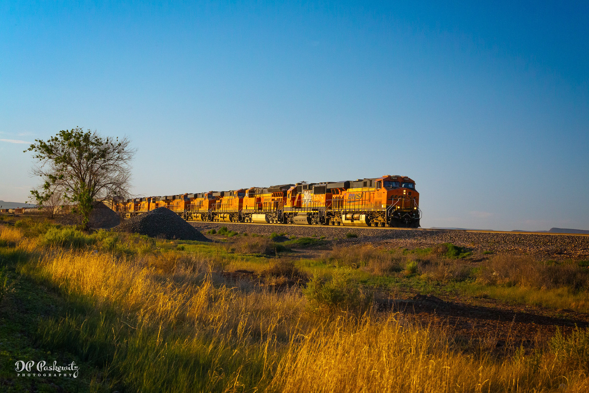 Out of the Sun at Grants, NM: Eastward BNSF Manifest with GP 60; fourth location I caught this train; West of Grants, NM, 2016